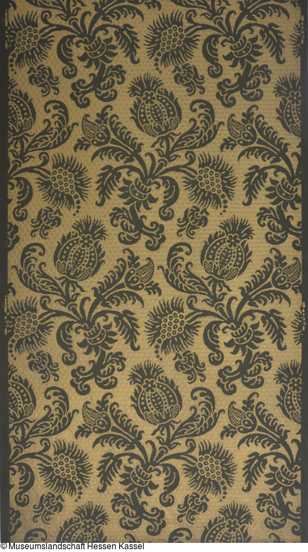 Prägetapete mit Imitation nach Vorlage eines Damastgewebes