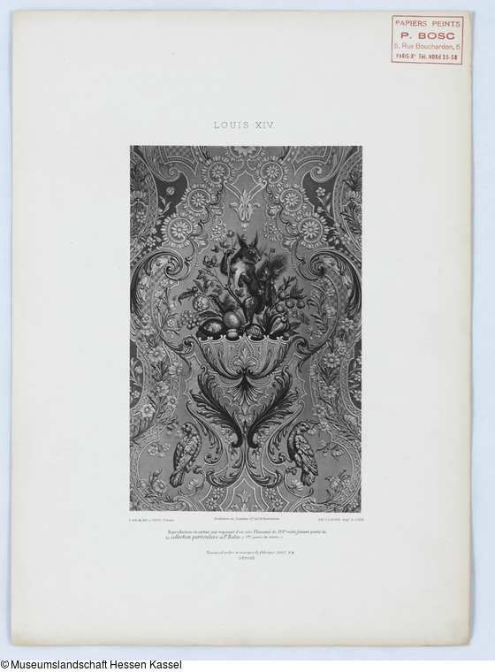 Stempel: PAPIERS PEINTS / P. BOSC / 5. Rue Bouchardon, 5 / PARIS-Xe Tél. NORd 35-58