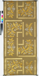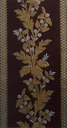 Papierbordüre mit Imitation einer Nadelmalerei und applizierter Gold- und Silberborte auf blauem Grund