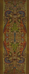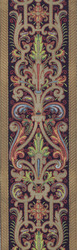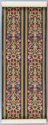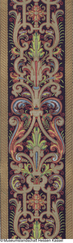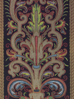 Papierbordüre mit Imitation einer farbigen Stickerei auf schwarzem Grund