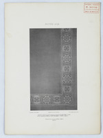 Produktkatalog Balin’scher Tapeten: Tafel Moyen-Age, Bildunterschrift »Reproduction en papier peint, en spierie décorative ou en tapisserie d´une bordure d´étoffe de la fin du XIIIᵉ siècle appartenant au Musée de South Kensington à Londres (Angleterre)«