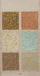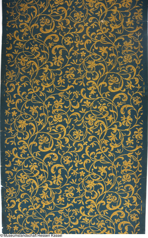 - L DTM T 423 b: Papiertapete mit Imitation einer Goldstickerei auf unterschiedlichen