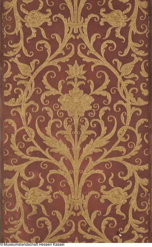 Papiertapete mit Imitation einer Goldstickerei auf Seidengewebe