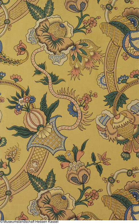 Papiertapete mit Imitation eines bedruckten Seidengewebes mit chinoise anmutendem Muster |