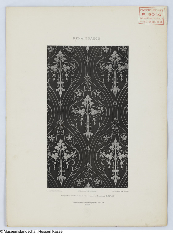 Stempel: PAPIERS PEINTS / P. BOSC / 5. Rue Bouchardon, 5 / PARIS-Xe Tél. NORd 35-58