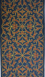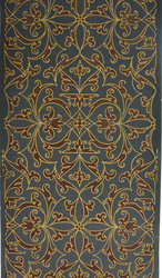 L DTM 1709: Papiertapete mit Imitation einer Applikationsstickerei mit Goldfäden in Anlegetechnik